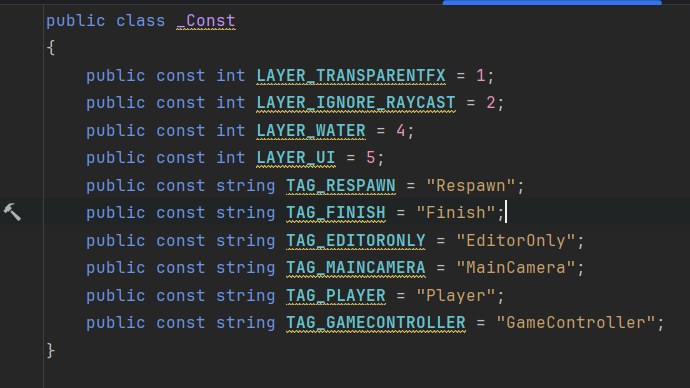 在项目开发中我们可以对诸如Layer、Tag等编辑器数据进行常量生成,来代替在代码中通过输入字符串生成常量的形式以提高开发效率。