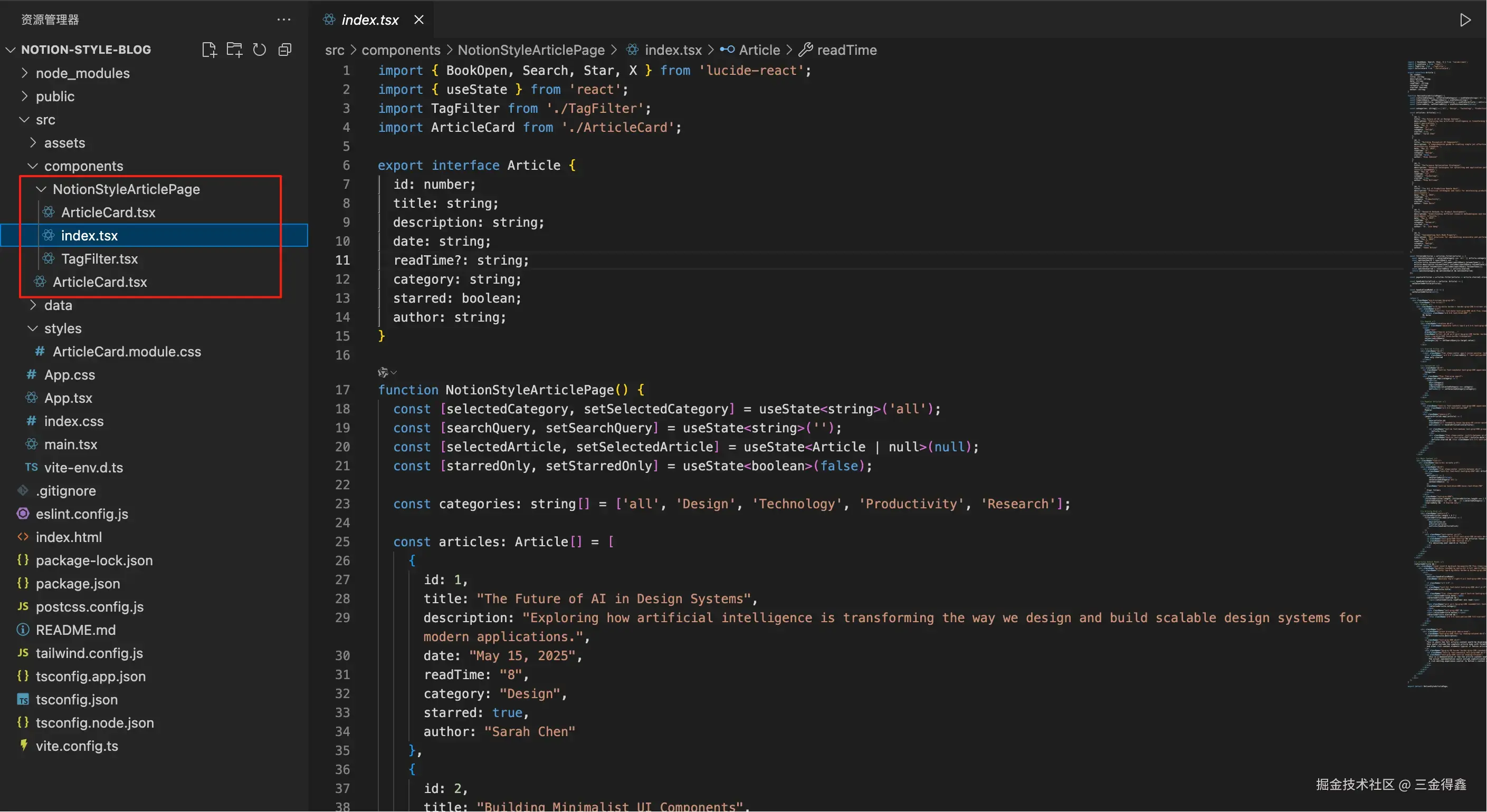 指令:使用 React 写一个 Notion 风格的文章列表。