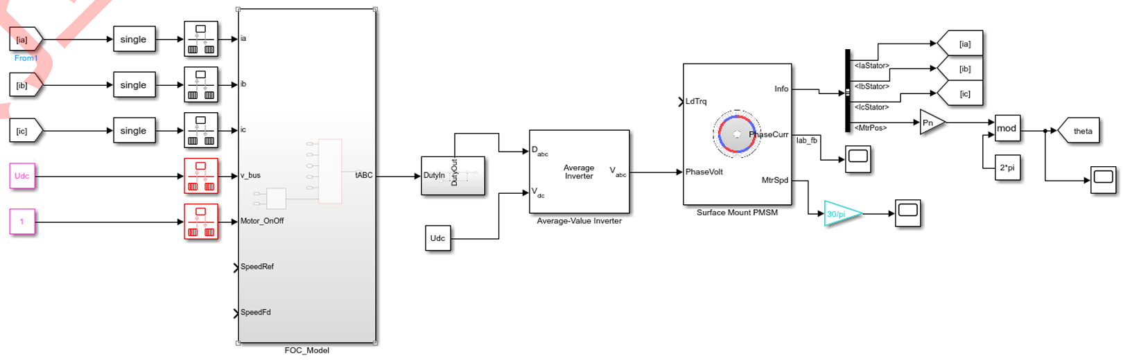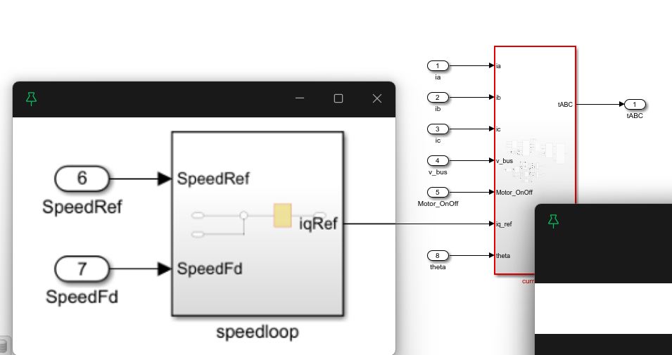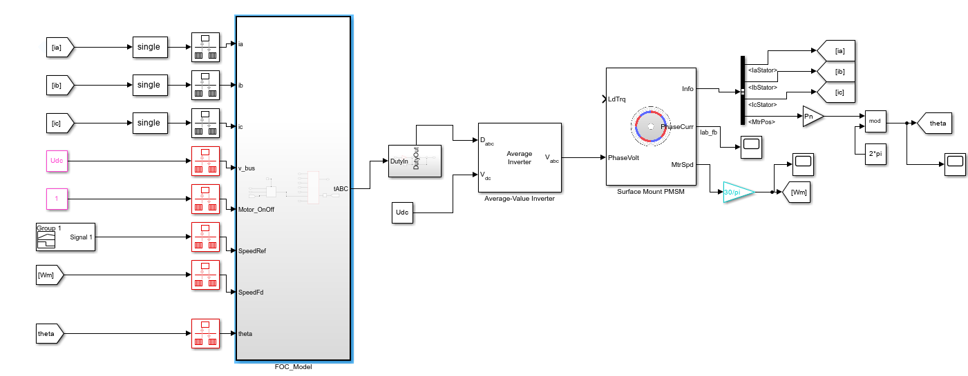 - 将速度环与电流环子系统结合在一起形成新的子系统FOC_Model;