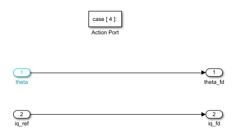 - 此时还需要修改电流环模块的状态记得第四状态,将电机的输出的电角度作为模型的计算角度输入;