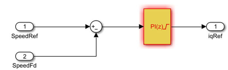 - 速度环输入为参考转速和反馈速度,输出为q轴参考电流