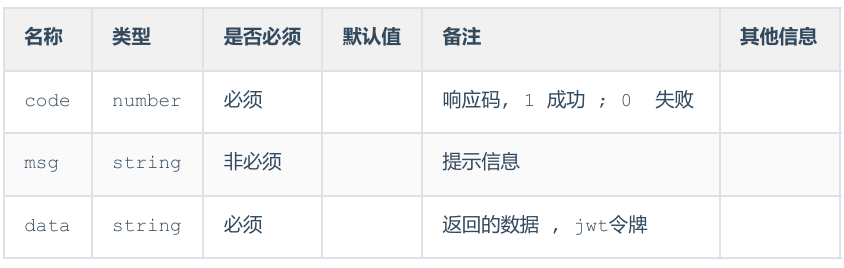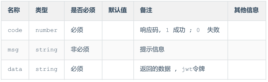 接口描述:该接口用于员工登录Tlias智能学习辅助系统,登录完毕后,系统下发JWT令牌。