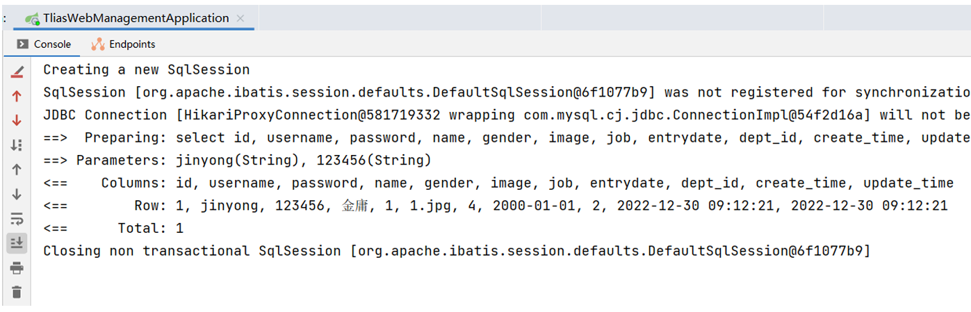 Emp loginEmp = empMapper.getByUsernameAndPassword(emp);