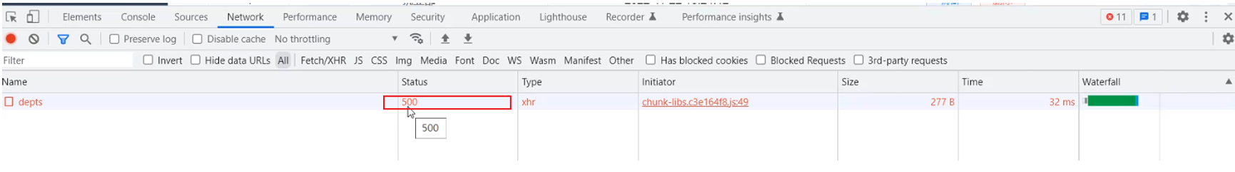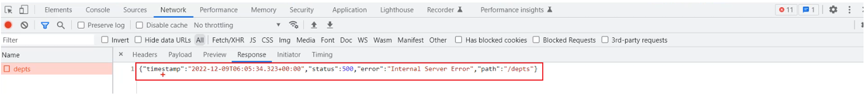 我们来看一下出现异常之后,最终服务端给前端响应回来的数据长什么样。