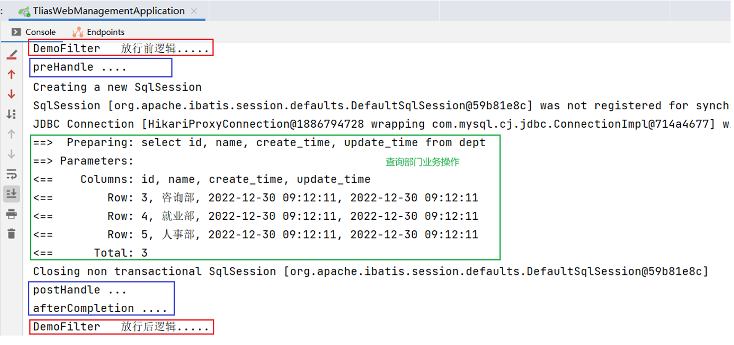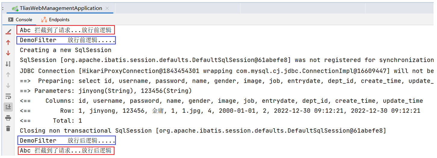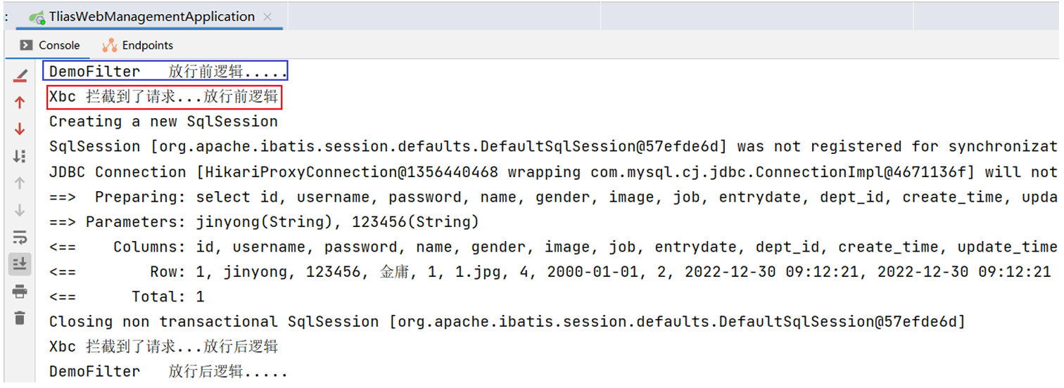 接下来我们就来演示下过滤器和拦截器同时存在的执行流程: