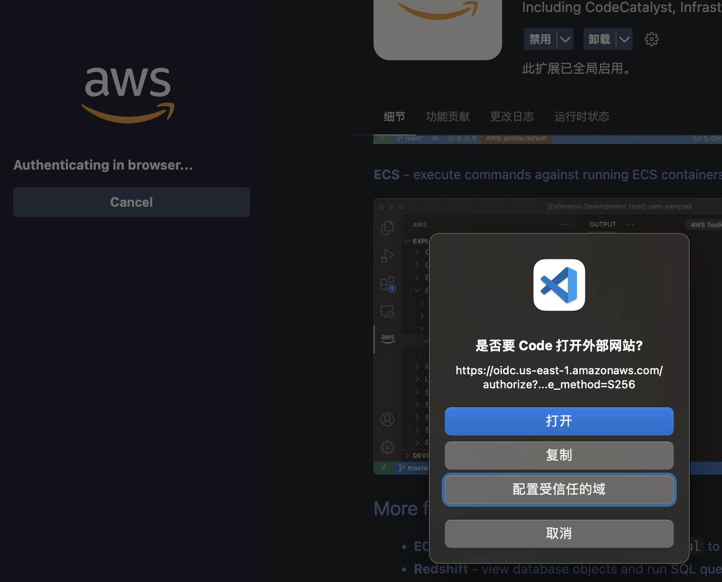 更多可见:https://marketplace.visualstudio.com/items?itemName=AmazonWebServices.aws-toolkit-vscode