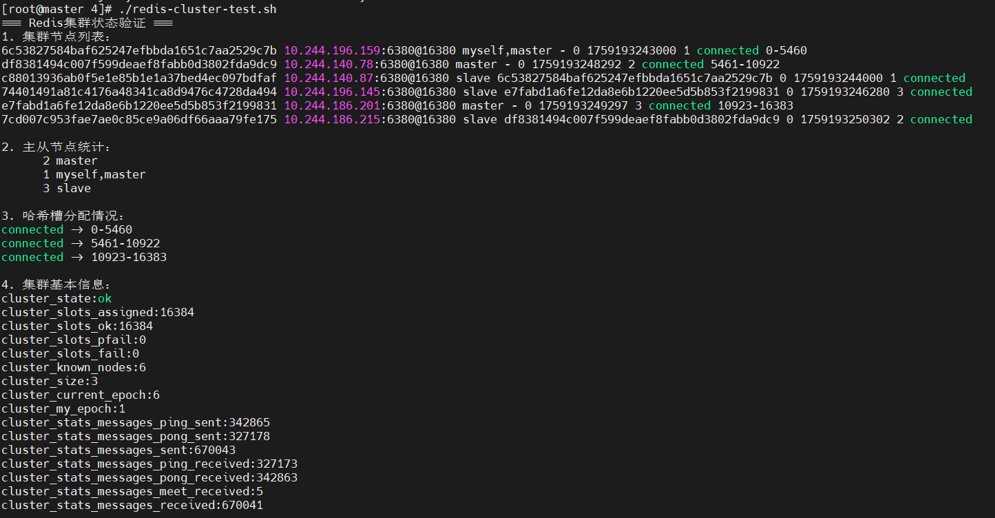 redis-cluster-0、redis-cluster-1)和 DNS 记录(如redis-cluster-0.redis-cluster-service.redis-cluster.svc.cluster.local),确保 Redis 节点之间的通信地址固定(集群初始化时配置的节点地址不会因 Pod 重建失效)。 -