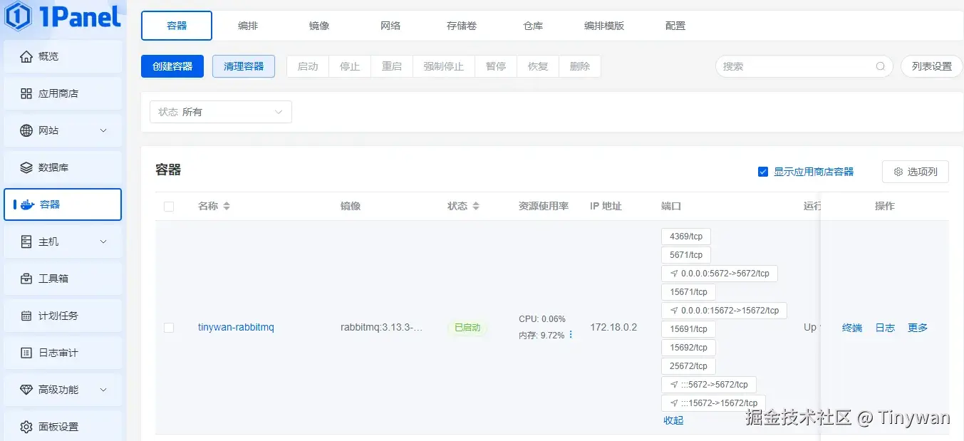 安装成功后,就可以在镜像中找到已安装好的RabbitMQ镜像容器