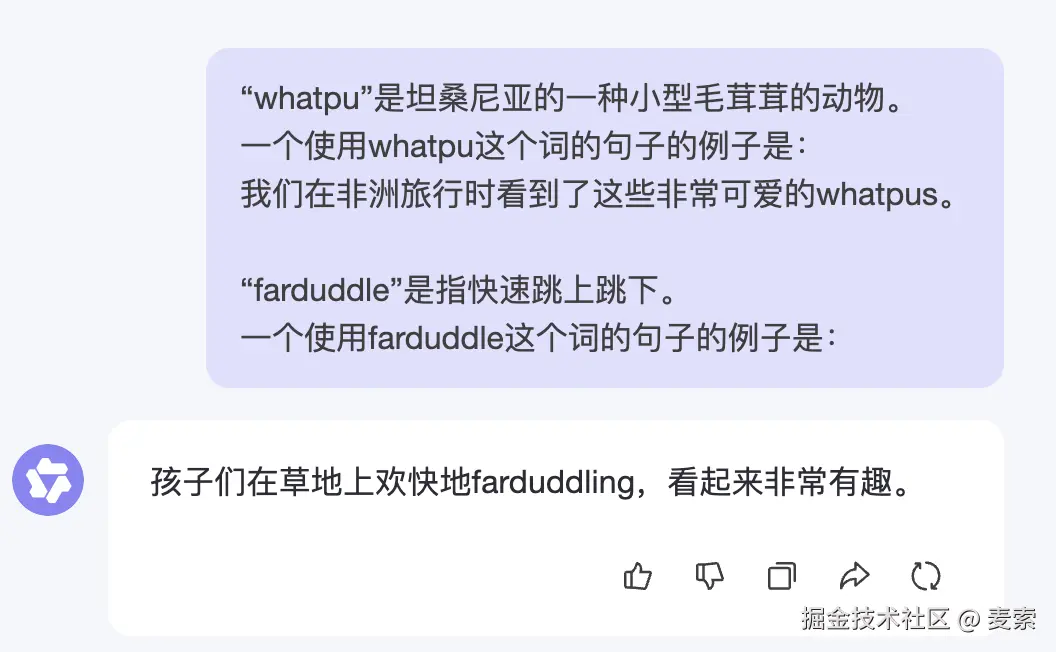 在上面的例子中,第一句是指令,第二句是输入数据,第三句是输出数据。本例子没有上下文。提示词所需的格式取决于想要完成的任务类型,并非所有元素都是必须的。
