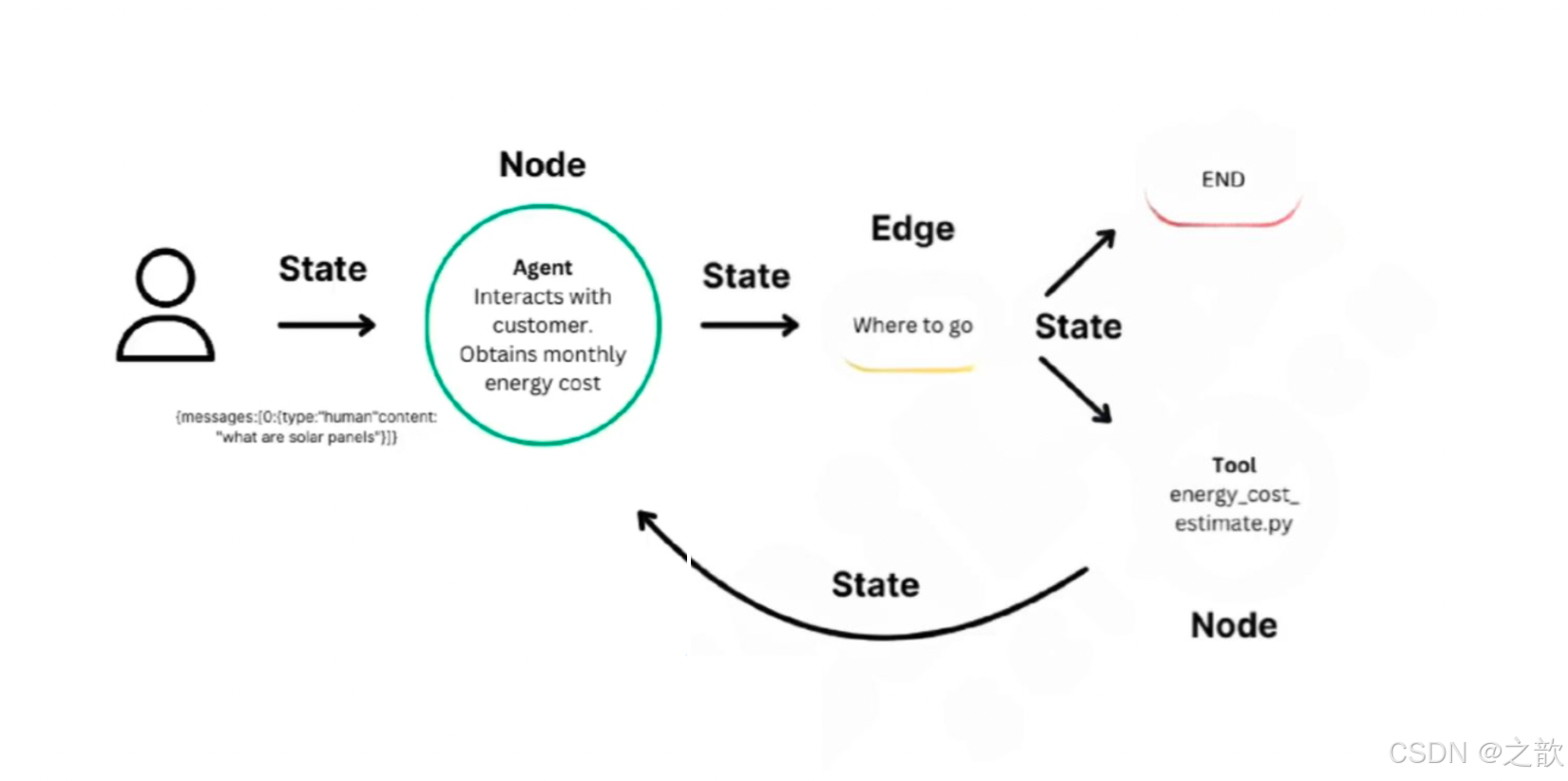 更新的 状态。 - 边:Python 函数,根据当前 状态 确定要执行的下一个 节点。它们可以是条件分支或固定转换。