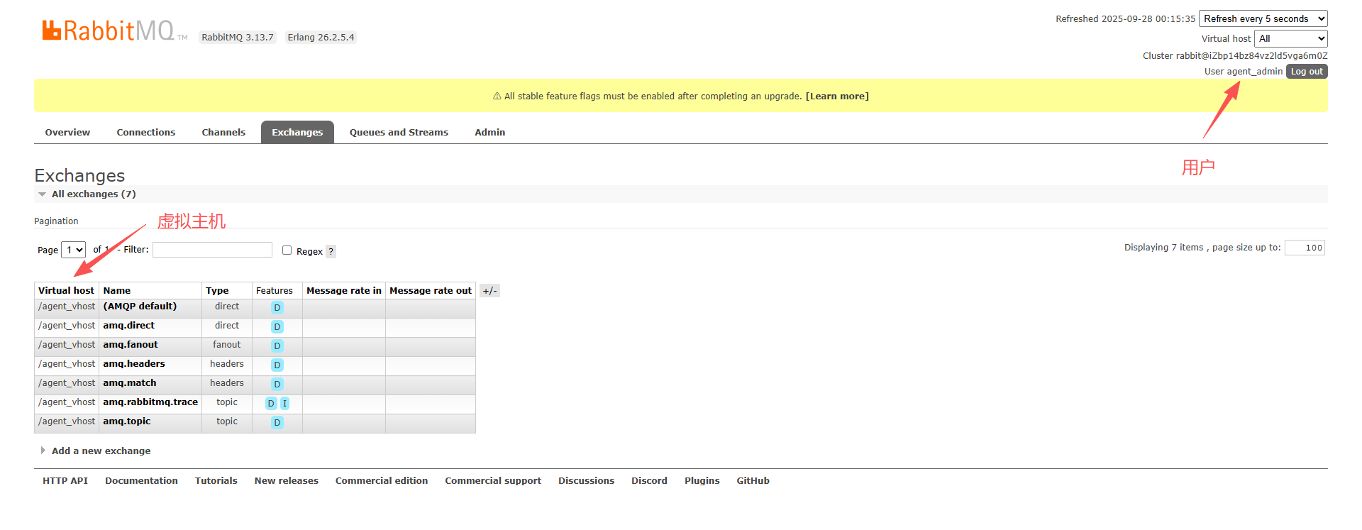 使用虚拟主机必须要在application文件中加上该连接配置 , 安全组中记得开放 5672 端口
