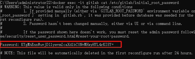 docker exec-it gitlab cat/etc/gitlab/initial_root_password