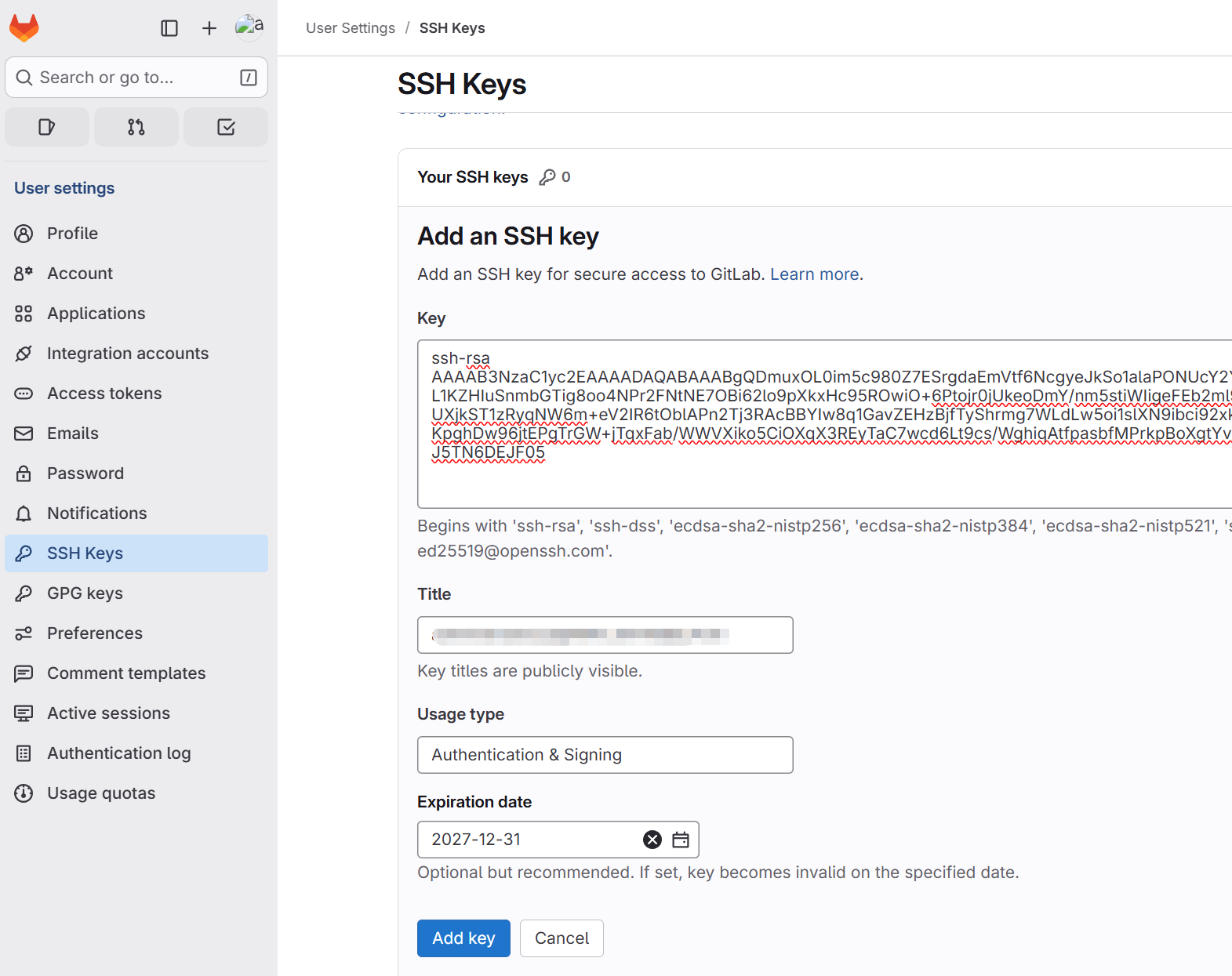 转到子目录.ssh。如果以前没有使用过,您需要生成一个 SSH 密钥对