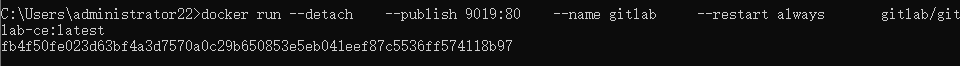 docker run--d etach--p ublish 9019 : 80--n ame gitlab--r estart always gitlab/gitlab-ce : latest