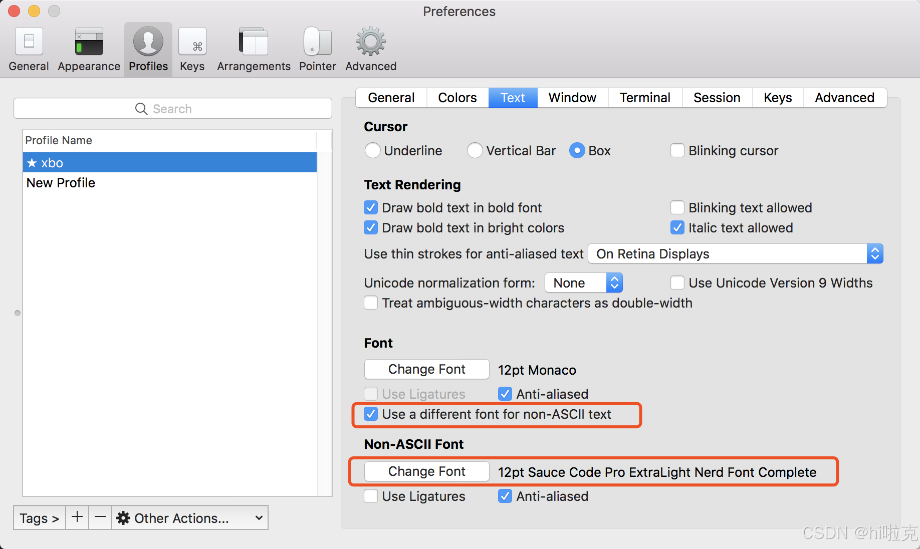 - 下载完成后在 iTerm 的 preferences 中设置: