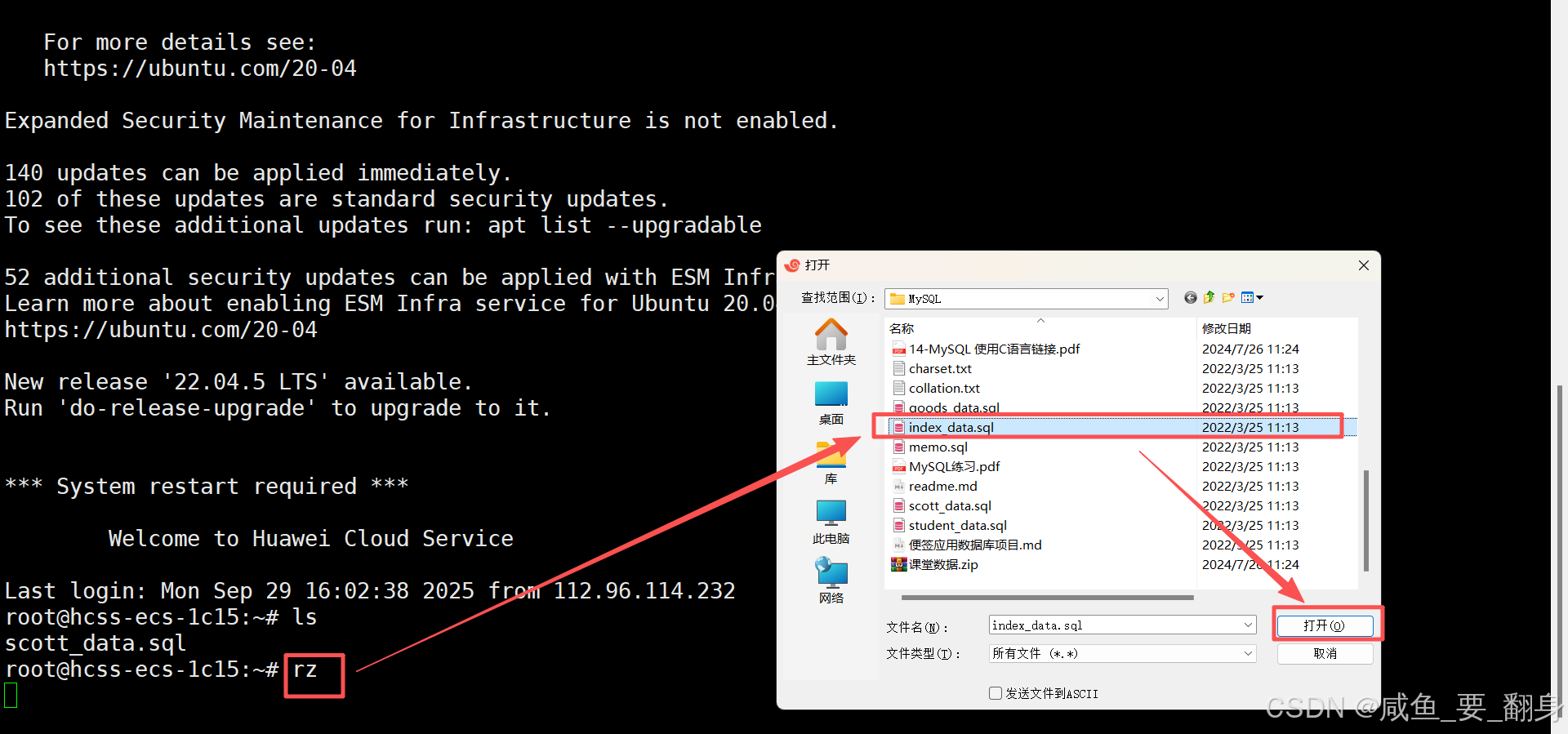 在我的电脑中,同上次的scott_data.sql这个SQL文件一样,从本地电脑拉取到当前云服务器上: