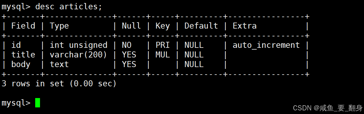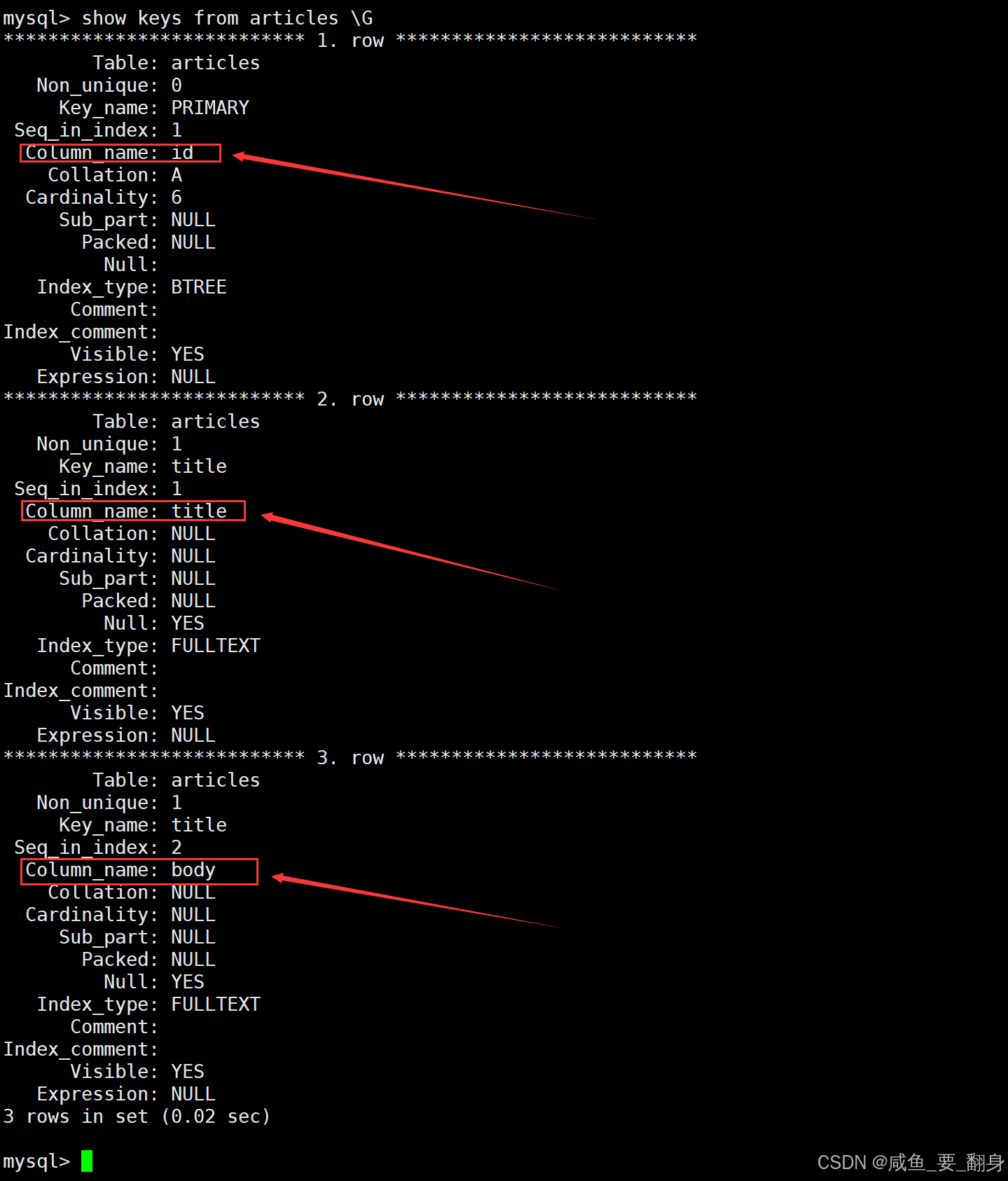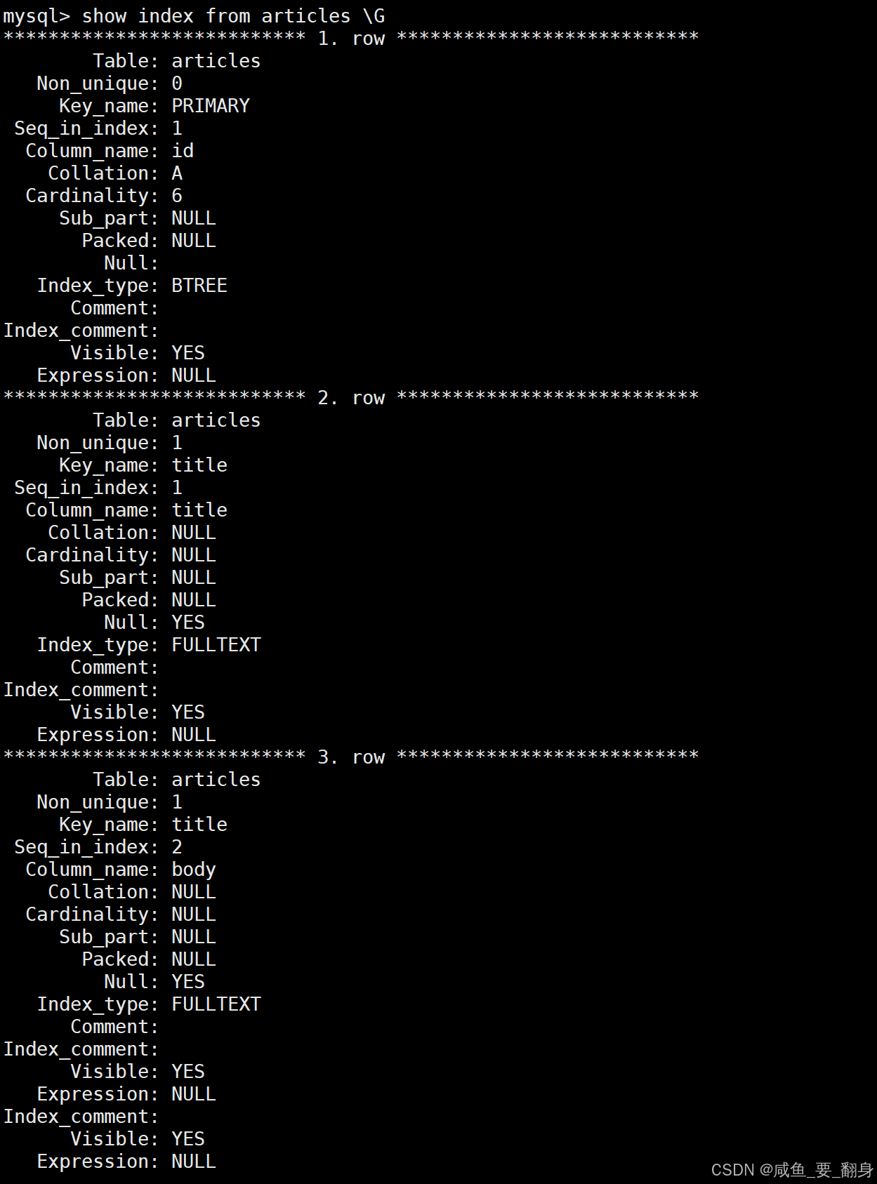 SQL查询(信息比较简略),比如查询articles表中的索引信息。如下: