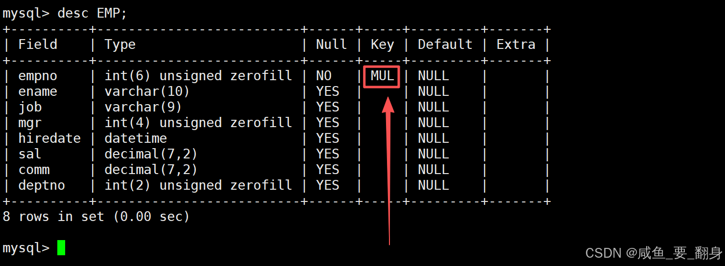 Non_unique: 表示该索引是否是唯一索引,如果是则为0,如果不是则为1。