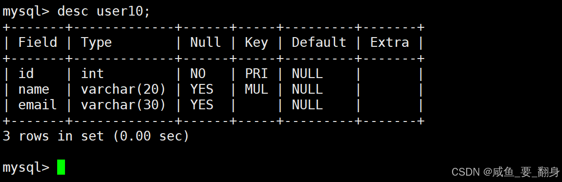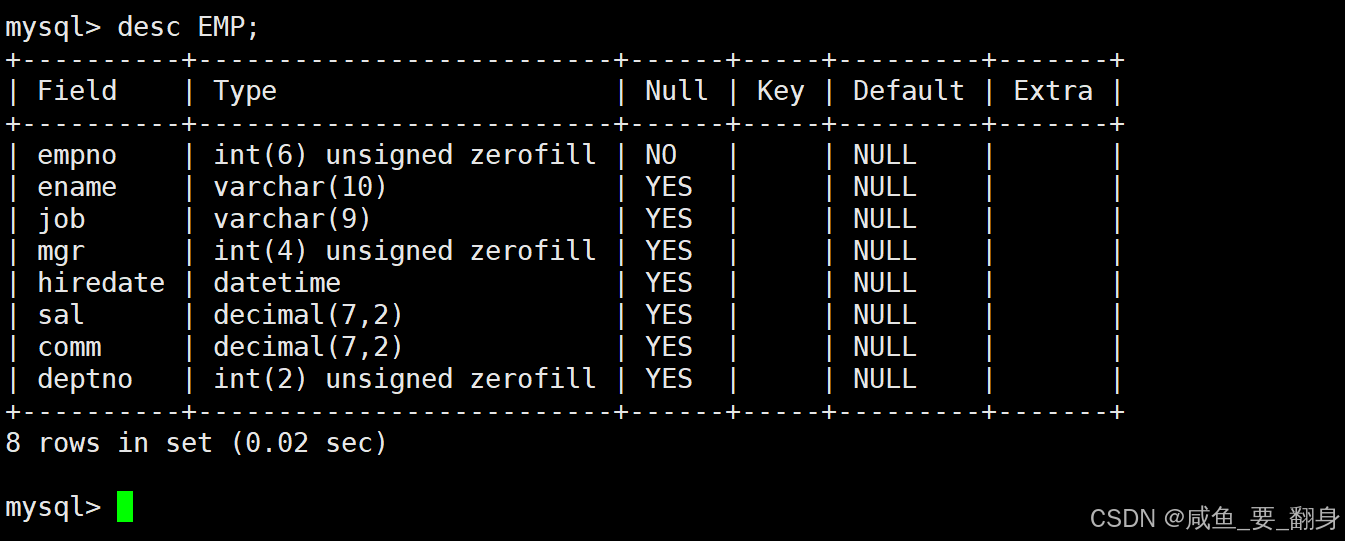 Null: 用于显示索引列中是否包含NULL,若包含则为YES,若不包含则为NO。