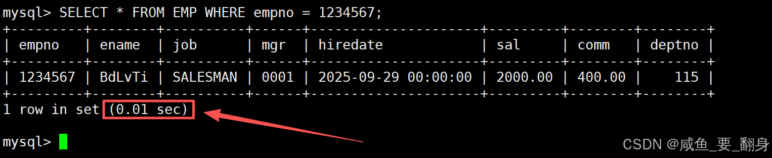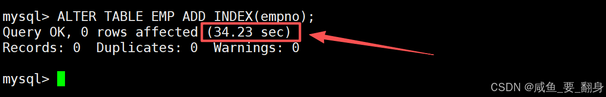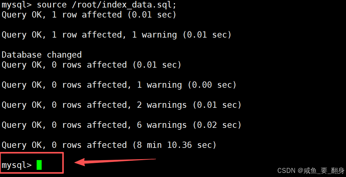 等待时直到出现新的交互mysql提示符,就说明完成了: