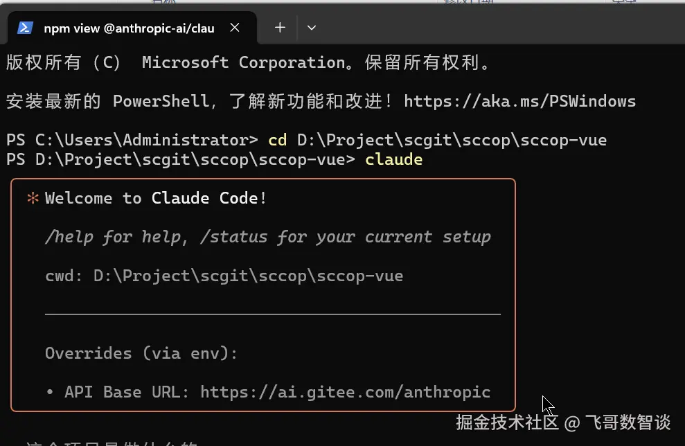 ,并在启动 claude