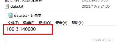 运行成功后,打开文件就可以看到100,3.140000出现在文件中。