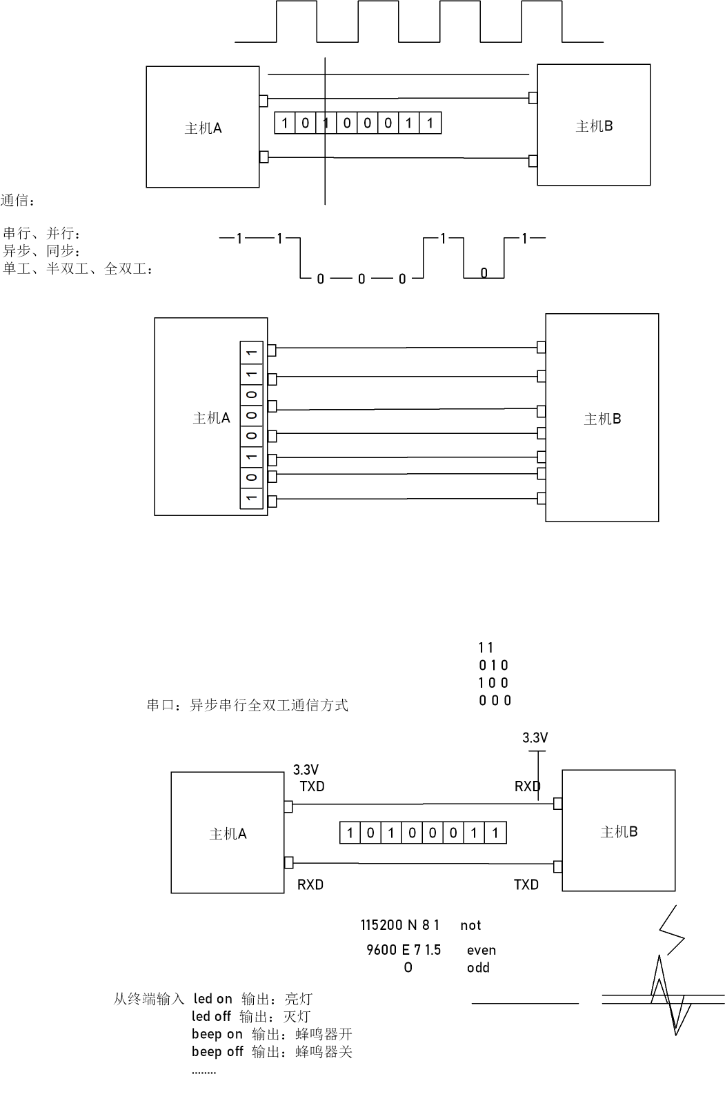 主机A与主机B之间仅用1根数据线 传输数据,数据位(如1 0 1 0 0 0 1 1