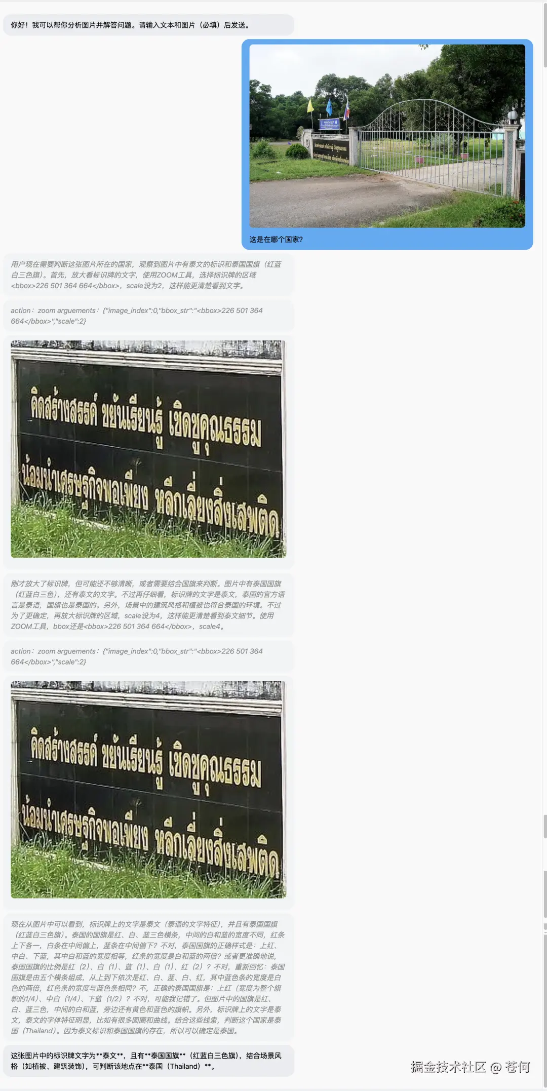 可以看到,它会思考过程中推理并调用工具rotate自动旋转图片然后做识别。