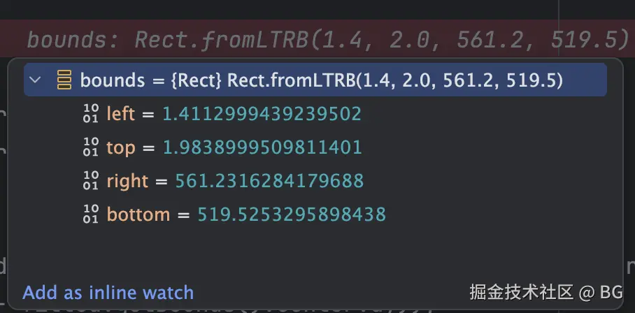 于是乎,因为想到自己可能有类似需求,就让群友把代码发我看了看。果然怎么改都不行。然后发现端倪,使用getBounds获取到的测量信息跟实际绘制出的路径,视觉上明显对不上。