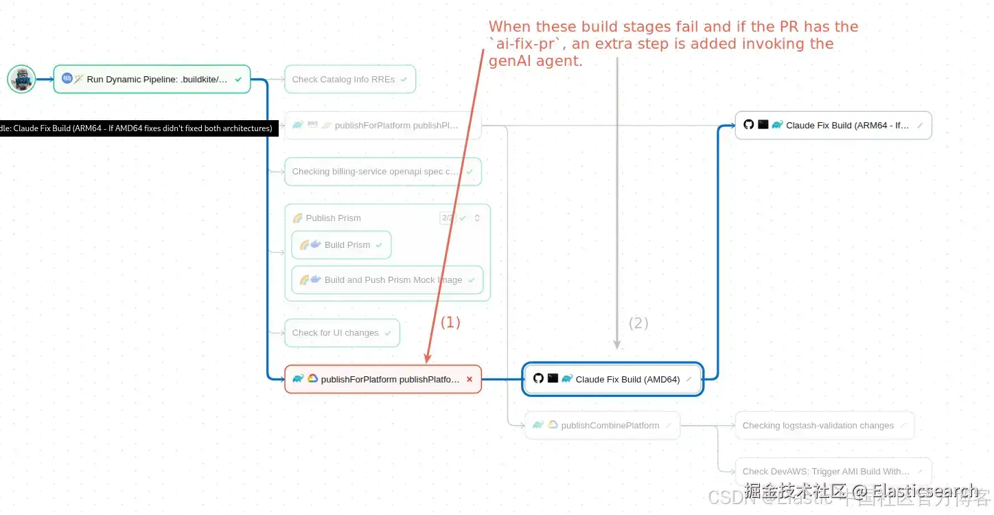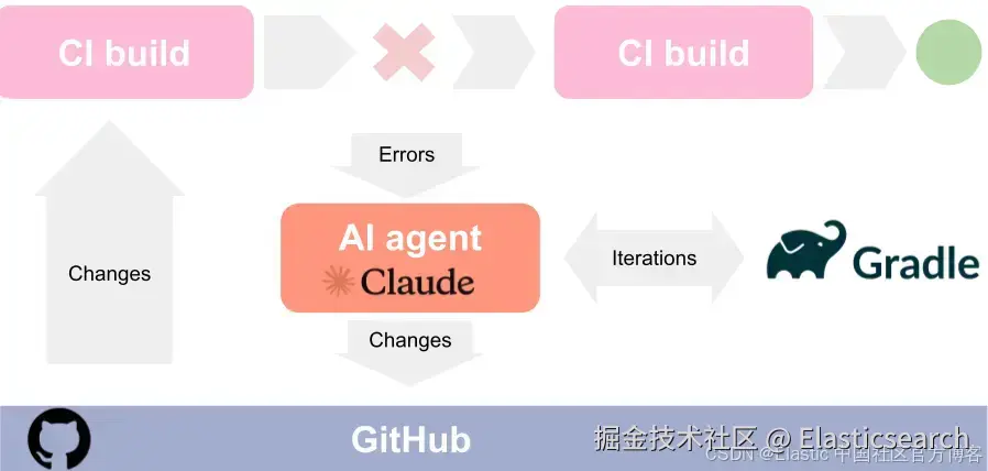 能够将具体的错误信息和失败的构建任务输入给 AI agent,包括那些依赖内部 Elastic Cloud 服务的任务。