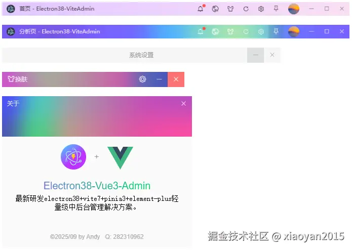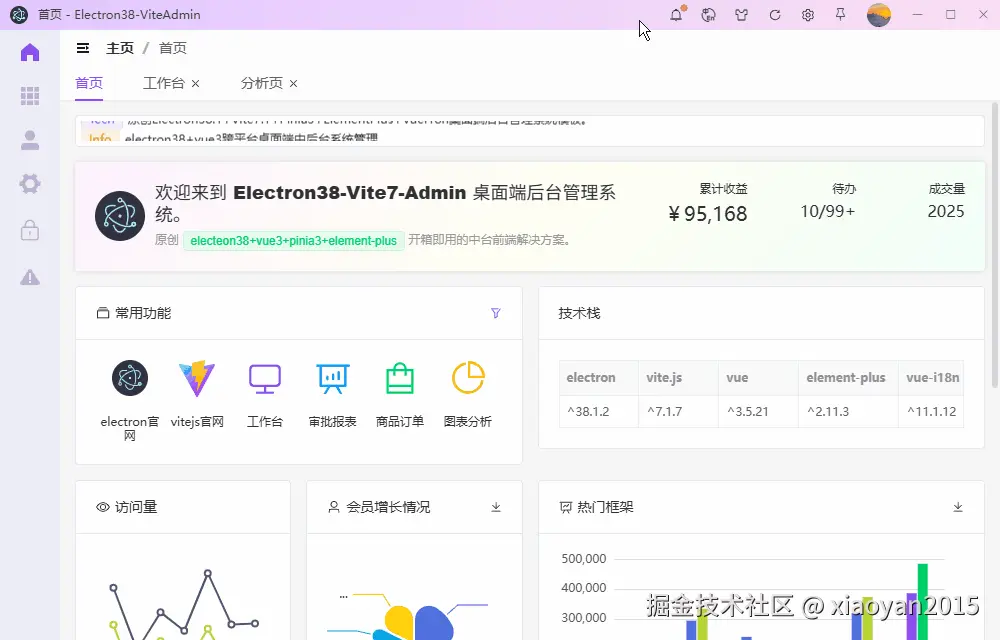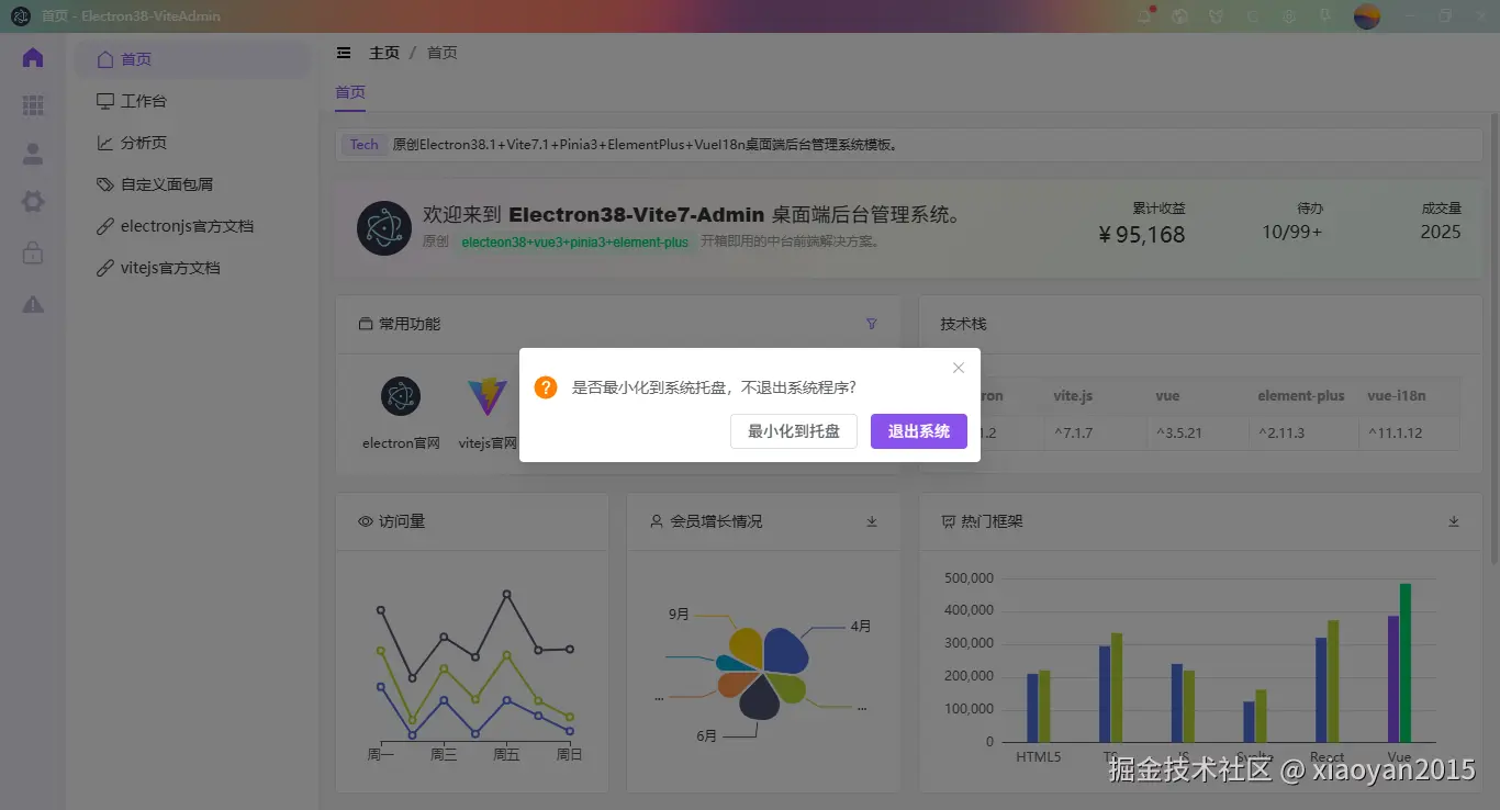 使用最新跨平台技术Electron38整合Vite7搭建项目模板。