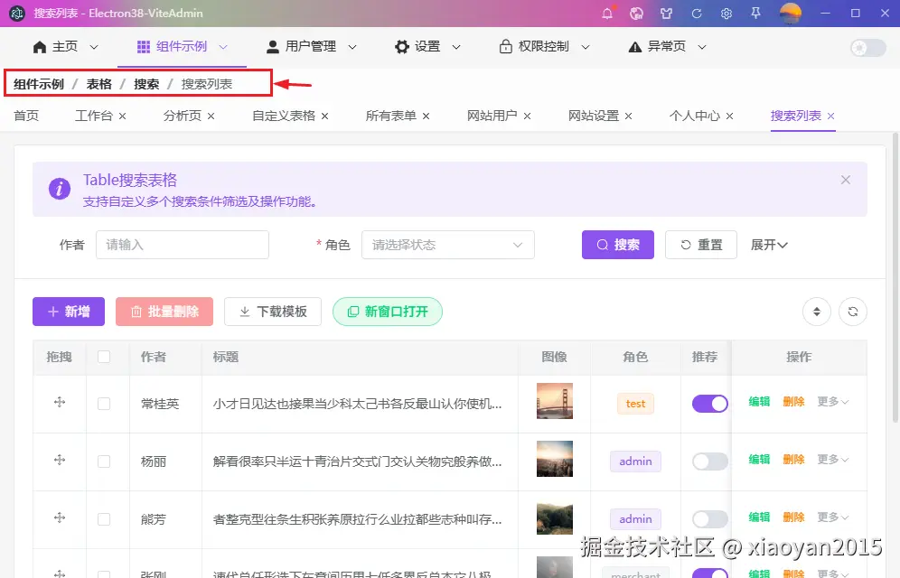 - 支持动态权限路由、面包屑导航、快捷标签栏缓存路由