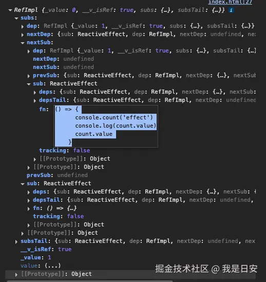 换一种更简单的思路:不去管是否重复建立依赖 ,而是确保 effect 在一次更新周期内只入队执行一次。做法是对 effect 加统一的脏标记控制。