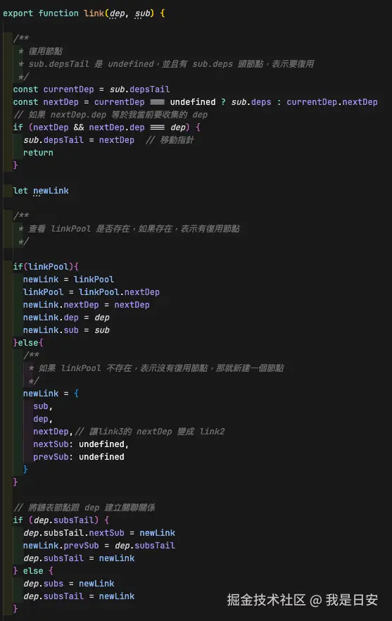 * sub.depsTail 为 undefined 且 sub.deps 存在时,尝试复用