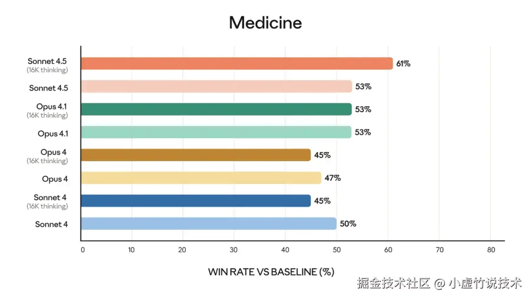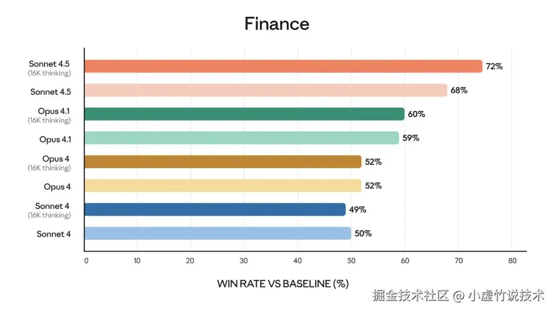 金融、法律、医学和理工科(STEM)领域 与包括 Opus 4.1 在内的旧模型相比,Claude Sonnet 4.5 在特定领域知识和推理方面表现得明显更好。