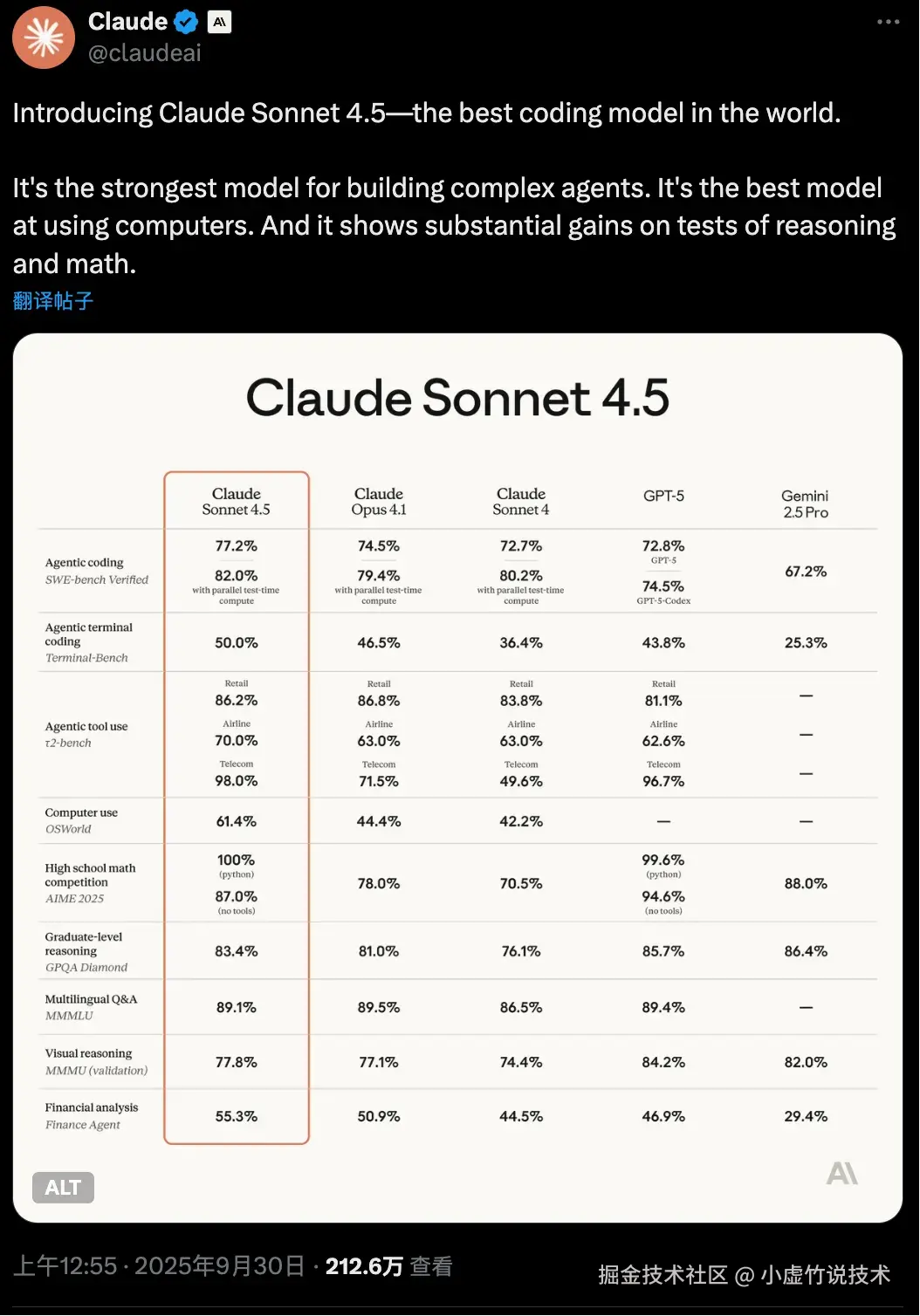 9月30号凌晨,Claude 重磅发布 Claude Sonnet 4.5。