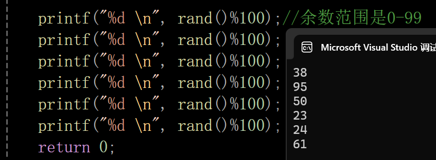 printf("%d \n", rand()%100);//余数范围是0-99