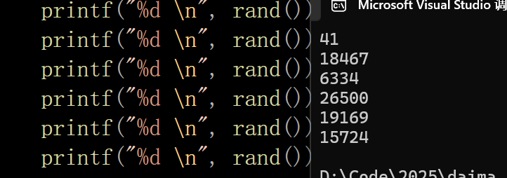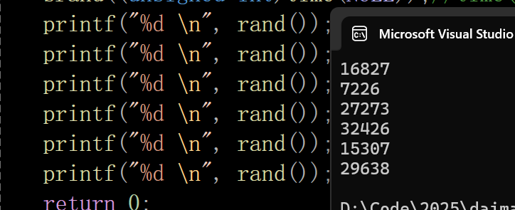 printf("%d \n", rand());//还有就是注意一下:time函数的使用也要头文件 #include<time.h> 不要忘记了