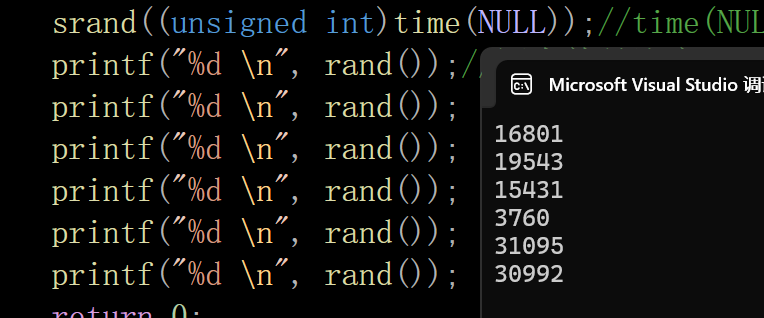 srand((unsigned int)time(NULL));//time(NULL)的意思是,调用time函数返回时间戳,这里没有接收返回值,不用time参数,我们就用NULL,这里的NULL先不做解析,后面我会讲到的