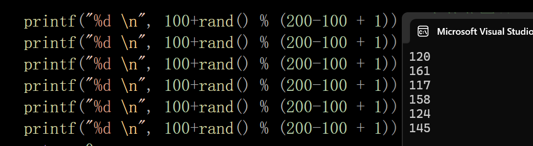 printf("%d \n", 100+rand() % (200-100 + 1));//余数范围是0-100,加上100,就是100-200