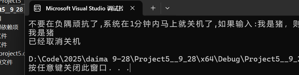 如果在1分钟内输入:"我是猪",则取消关机