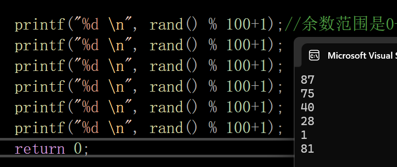 printf("%d \n", rand() % 100+1);//余数范围是0-99,加上1就是1-100