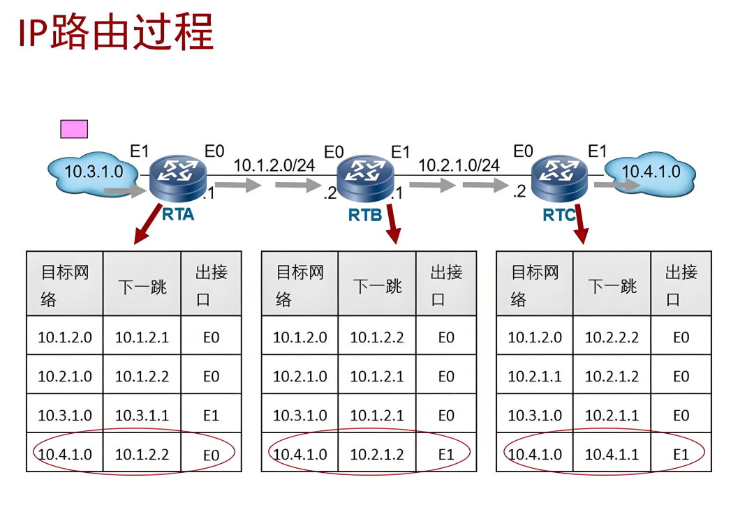 路由表是路由器的核心决策依据。当路由器收到一个数据包时,会查看其目标IP地址,并与路由表中的条目进行匹配,从而决定该从哪个接口发送出去。表中最关键的信息通常包括目的网络地址 、下一跳地址 (下一个路由器的IP)和出接口。