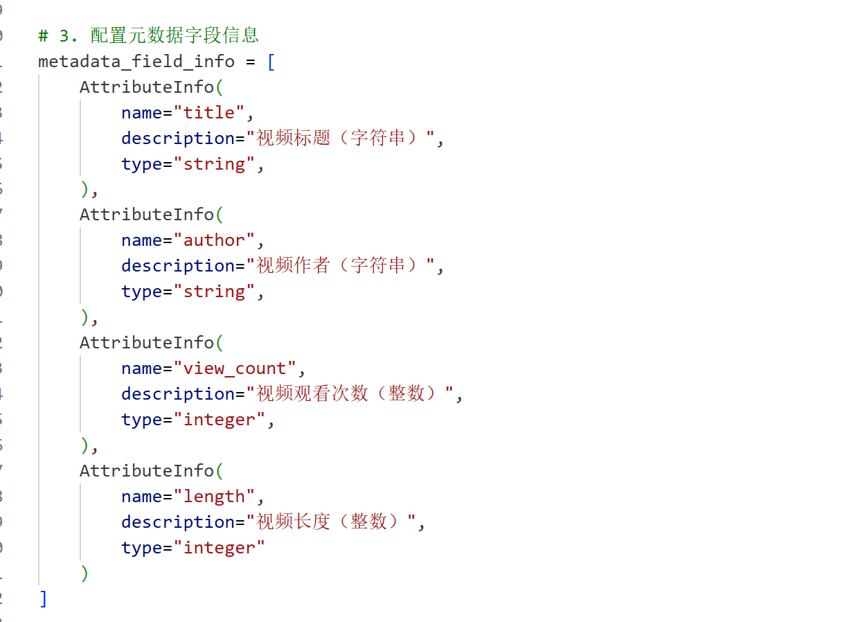 然后是向量存储和配置元数据字段信息。