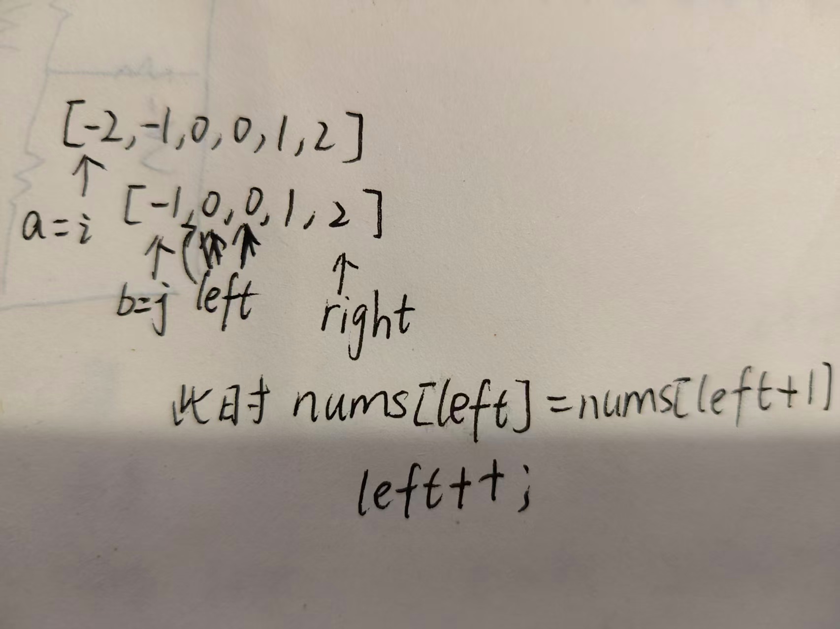 while(left < right &&nums[right]==nums[right-1])//右指针去重