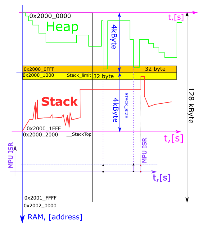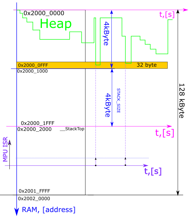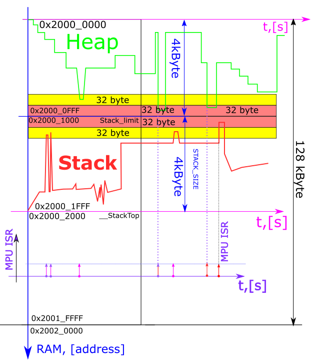 因此事实证明,MPU 负责守护堆栈和堆内存。