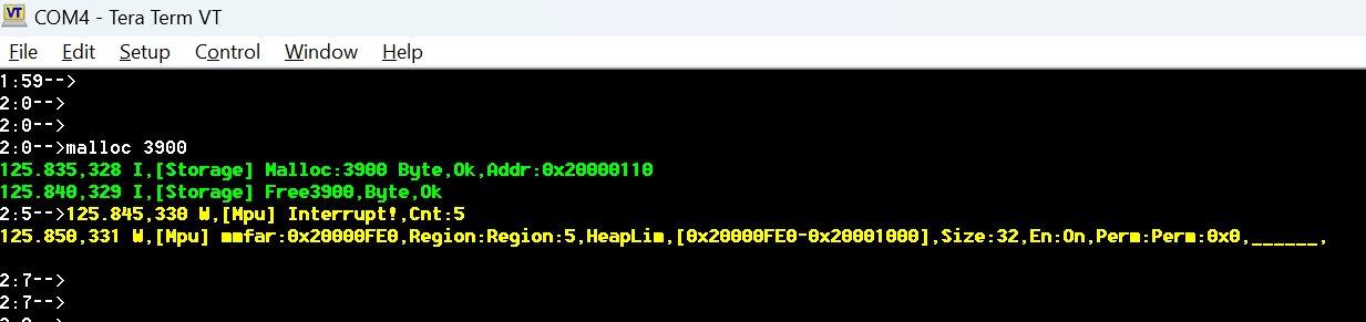 您还可以通过尝试分配和写入过多的堆内存在 UART-CLI 终端中检查这一点。