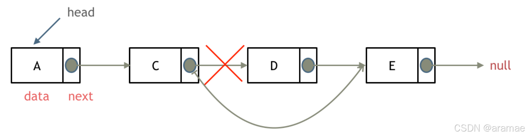 那有同学说了,D节点不是依然存留在内存里么?只不过是没有在这个链表里而已。