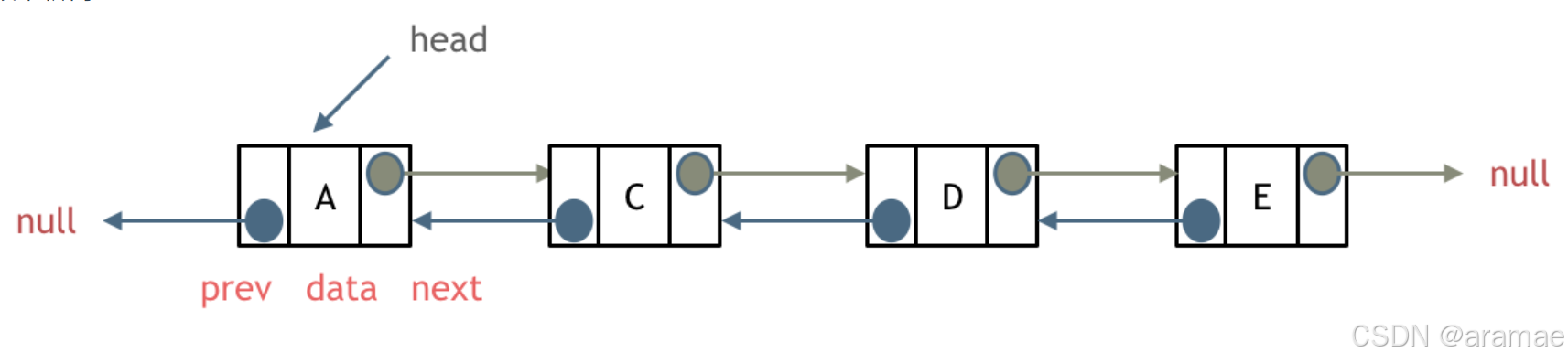 - 双链表:每一个节点有两个指针域,一个指向下一个节点,一个指向上一个节点。