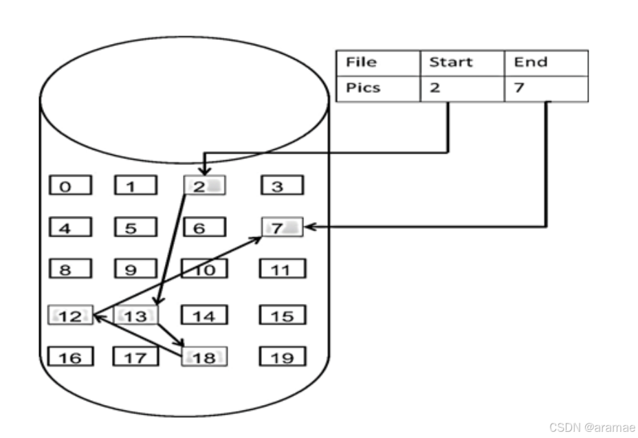这个链表起始节点为2, 终止节点为7, 各个节点分布在内存的不同地址空间上,通过指针串联在一起